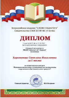 Личный сайт Старшего воспитателя Харитоновой Светланы Николаевны